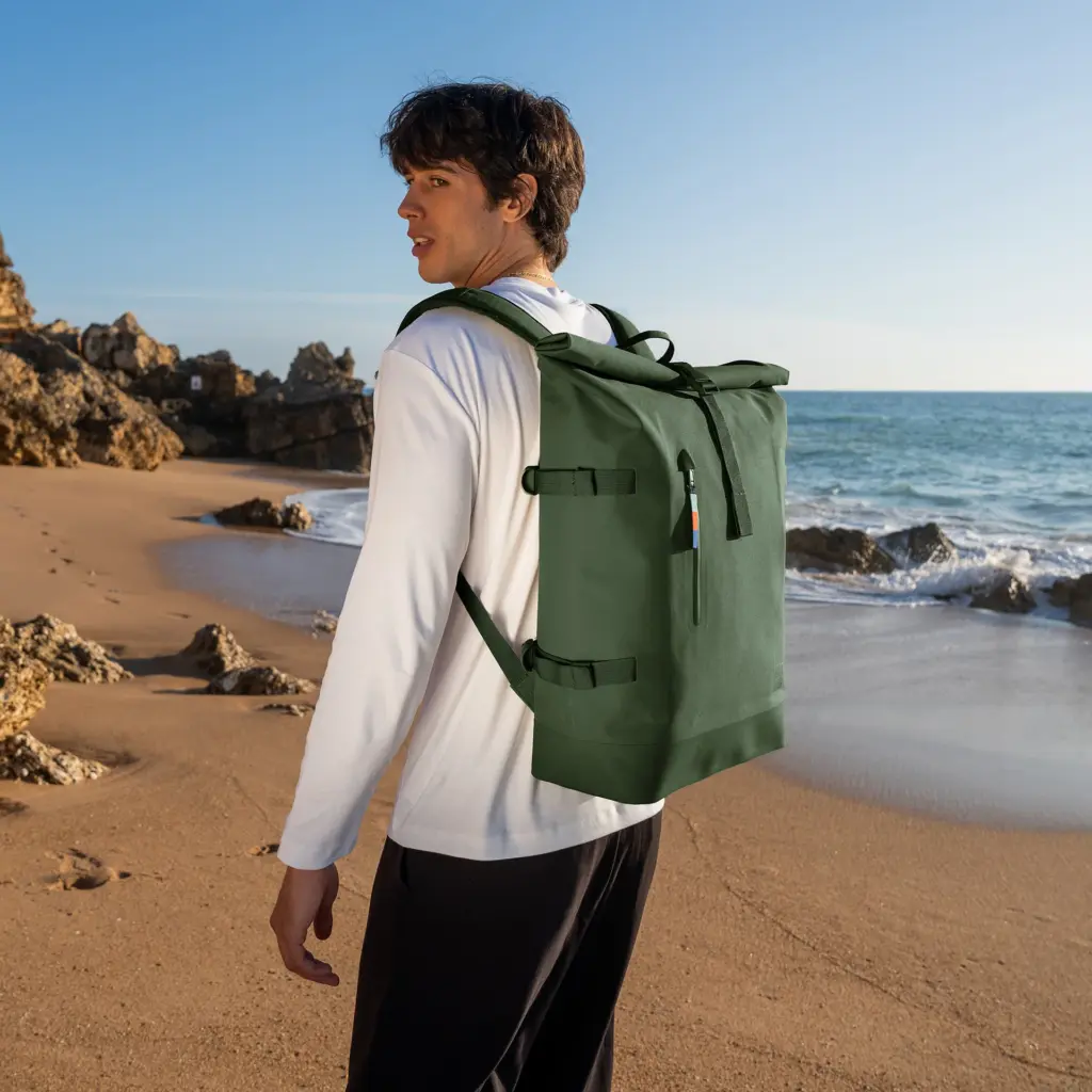 Unser Favorit: Der klassische Rolltop-Rucksack vereint minimalistisches Design mit hoher Funktionalität.